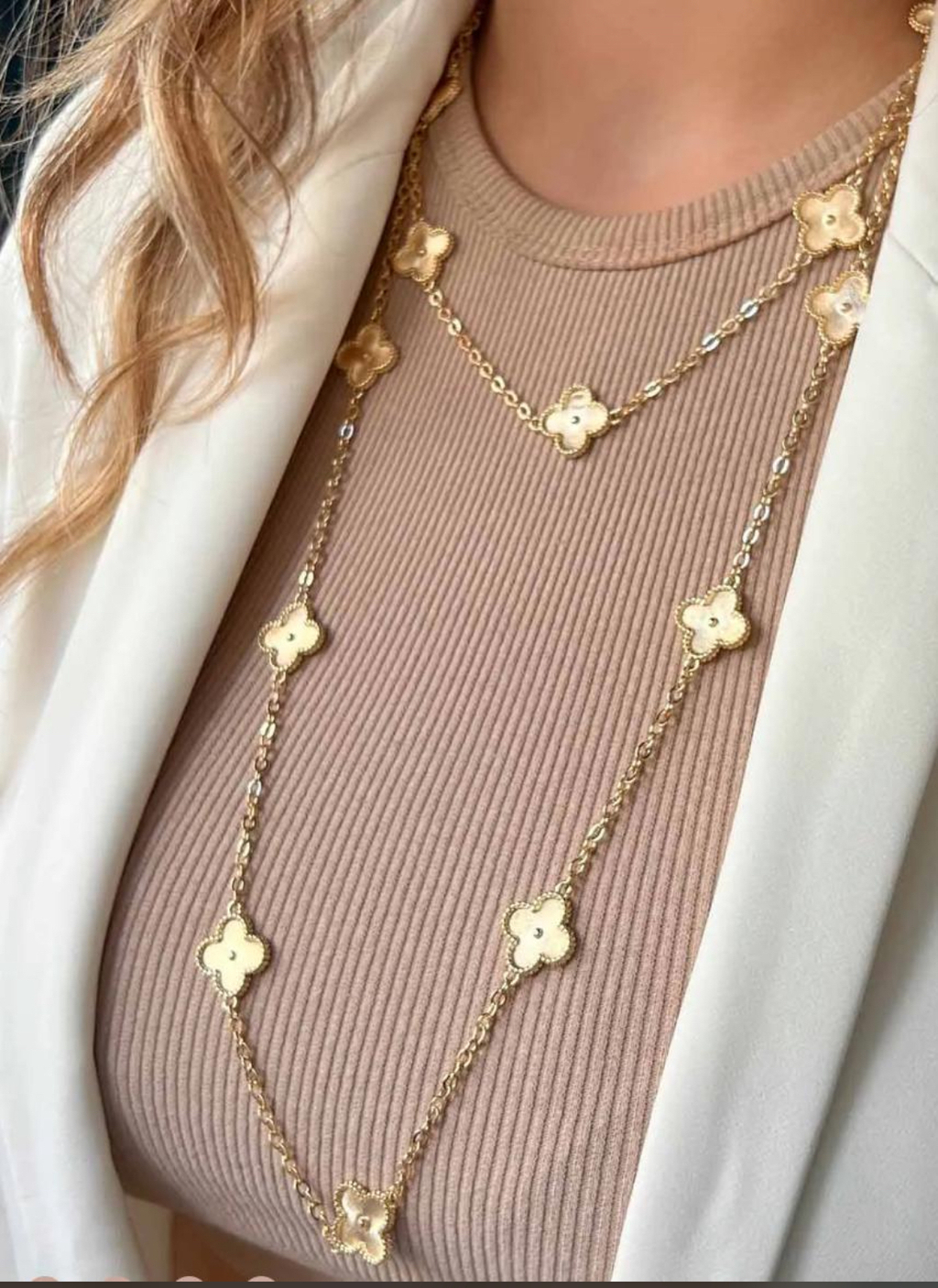 Colar modelo trevo inspiração e tendência atual. Modelo longo, medindo 60 cm. Ideal para alongar o corpo visualmente.